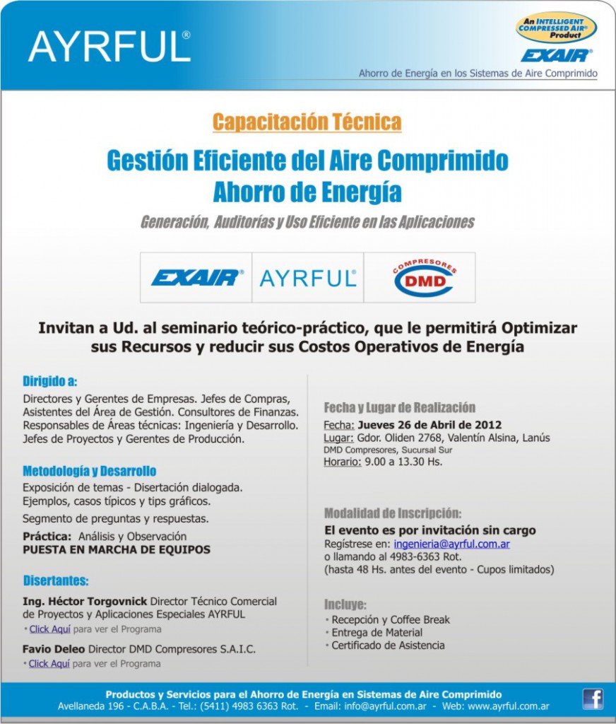 Próxima Capacitación: Ahorro de Energía y Eficiencia en los Sistemas de Aire Comprimido