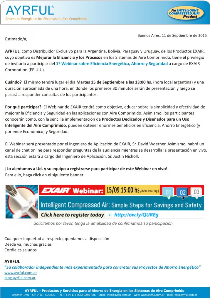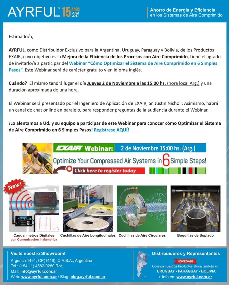 Nuevo Webinar EXAIR: Eficiencia Energética, Ahorro y Seguridad en el uso de Aire Comprimido