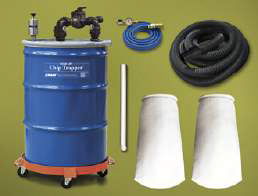 El Chip Trapper utiliza para su funcionamiento Aire Comprimido y puede llenar o vaciar un tambor de 208 litros en menos de dos minutos. Para comenzar, simplemente coloque la válvula de bombeo en posición de “llenado”. Una vez finalizada la operación (tanque de reserva vacío), seleccione la opción de “vaciado” para bombear el líquido refrigerante limpio hacia el tanque de reserva. Las virutas y otros desperdicios sólidos, quedarán almacenados en el filtro reutilizable dentro del Tambor.