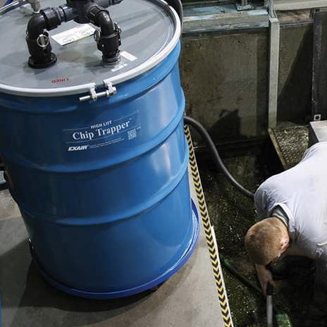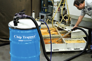 El Chip Trapper ofrece una solución eficiente, rápida y sencilla para eliminar virutas y otros desperdicios sólidos de líquidos refrigerantes y aceites de corte. Su funcionamiento consiste en aspirar el producto lleno de contaminantes captando los desperdicios y enviándolos hacia un filtro reutilizable. Este los retiene, filtrando los líquidos hacia el tambor.
