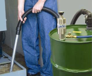 El Reversible Drum Vac de 110 lts., vacía un depósito de líquido refrigerante