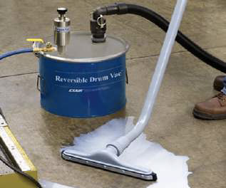El Kit Antiderrames utilizado en conjunto con el Mini Reversible Drum Vac provee una limpieza rápida para derrames.