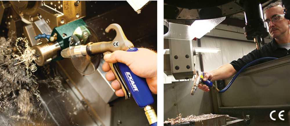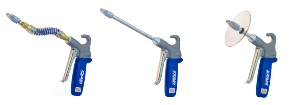 Nuestras Pistolas de Alta Eficiencia y Seguridad, no sólo reducen nivel de ruido. El diseño de las Boquillas de Aire evita el peligroso y mortal bloqueo (o contrapresión) de la salida del aire comprimido. Su diseño es ergonómico y viene en modelos para caudal regulable por gatillo, cargas pesadas, o con válvula auto bloqueante. Se encuentra disponible el opcional ‘Chip Shield’ para el soplado de virutas.