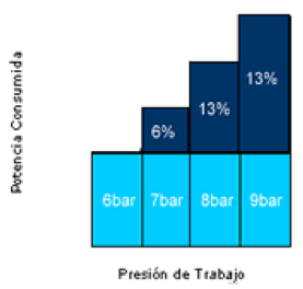 Por cada bar de reducción de la presión de consumo, se ahorrará un 7% de Energía.