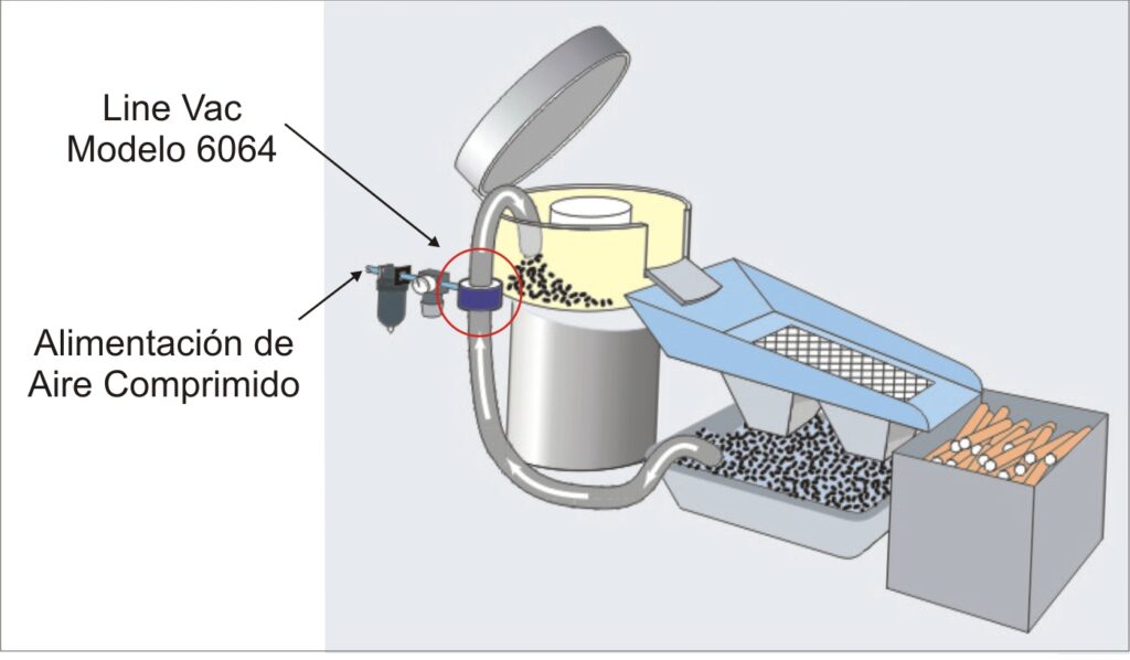 Alimentación de piezas a un vibrador con un Line Vac de Acero Inoxidable